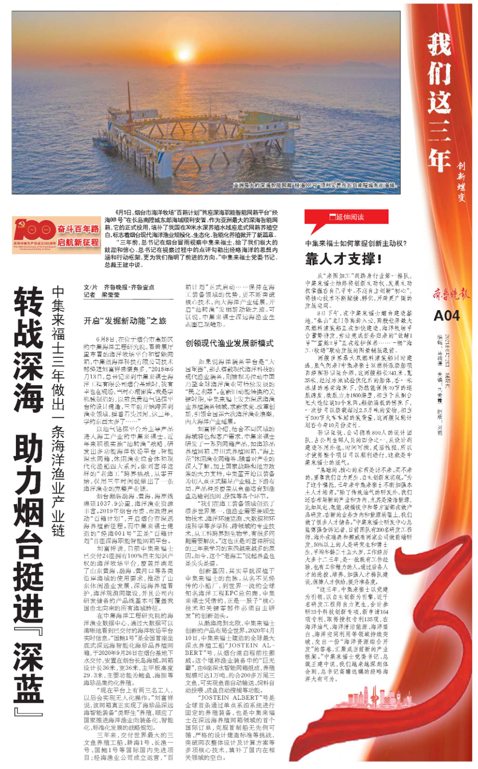 “三年前,总书记在烟台冒雨视察中集来福士,给了我们极大的鼓励和信心。总书记在视察过程中的点评勾勒出经略海洋的思想内涵和行动框架,更为我们指明了前进的方向。”中集来福士党委书记、总裁王建中说。