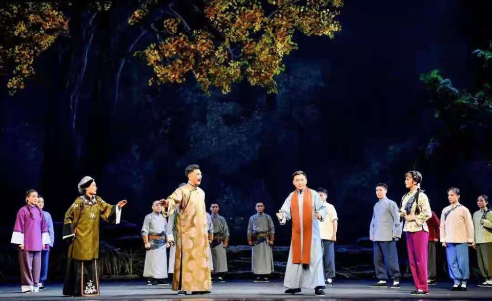 这种浪漫主义意象在最后一幕中表现得最为充分。周龙介绍,在这一幕中,独唱、三人合唱、六人不同声部合唱,一直到几十个人的合唱,充分渲染了悲壮、苍凉的氛围;在场景上,则利用京剧舞台上时空的自由转换,使实景与虚拟景观相融合,实现燕翼堂内、外、屋顶三个空间的转换和表达。