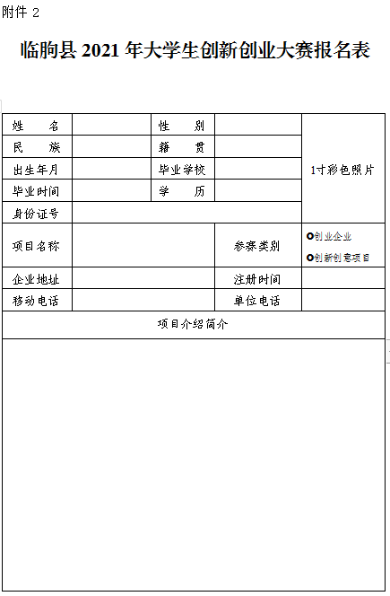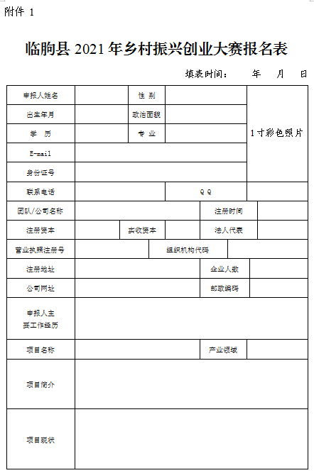 附件:1.临朐县2021年乡村振兴创业大赛报名表
