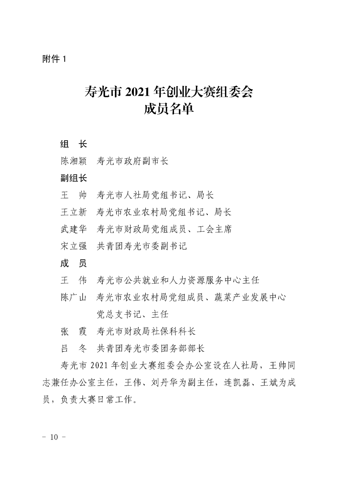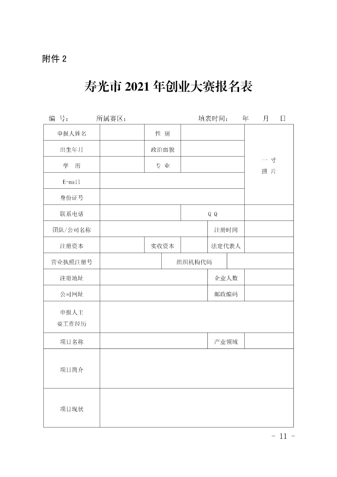 1.寿光市2021年创业大赛参赛报名表(附件2);