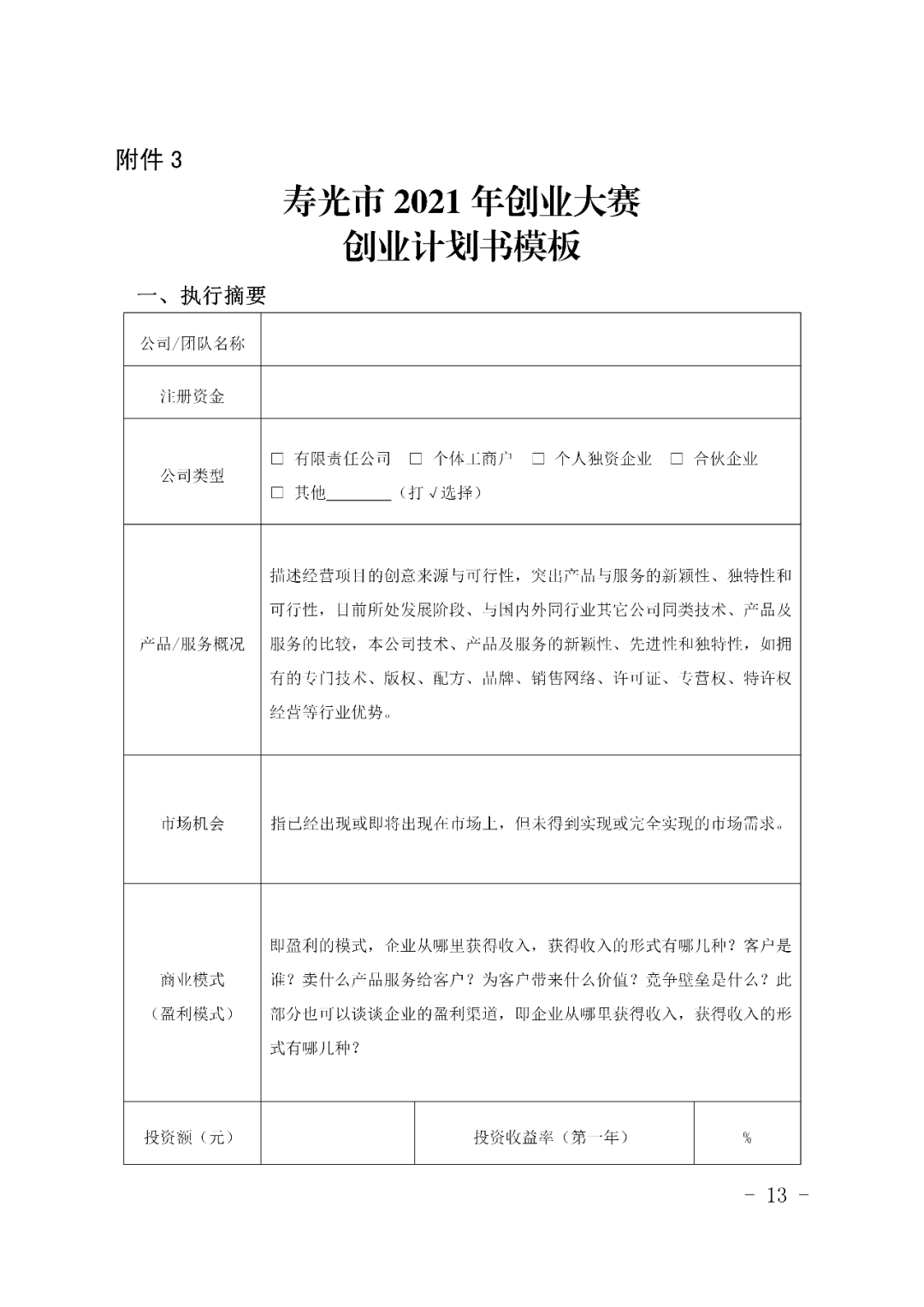 2.寿光市2021年创业大赛参赛创业计划书(附件3);
