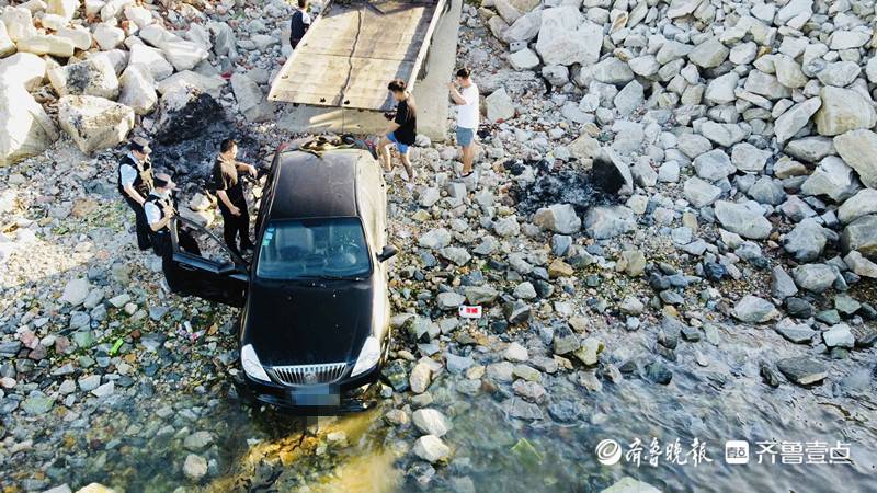 轿车冲入海中,烟台警民携手救援
