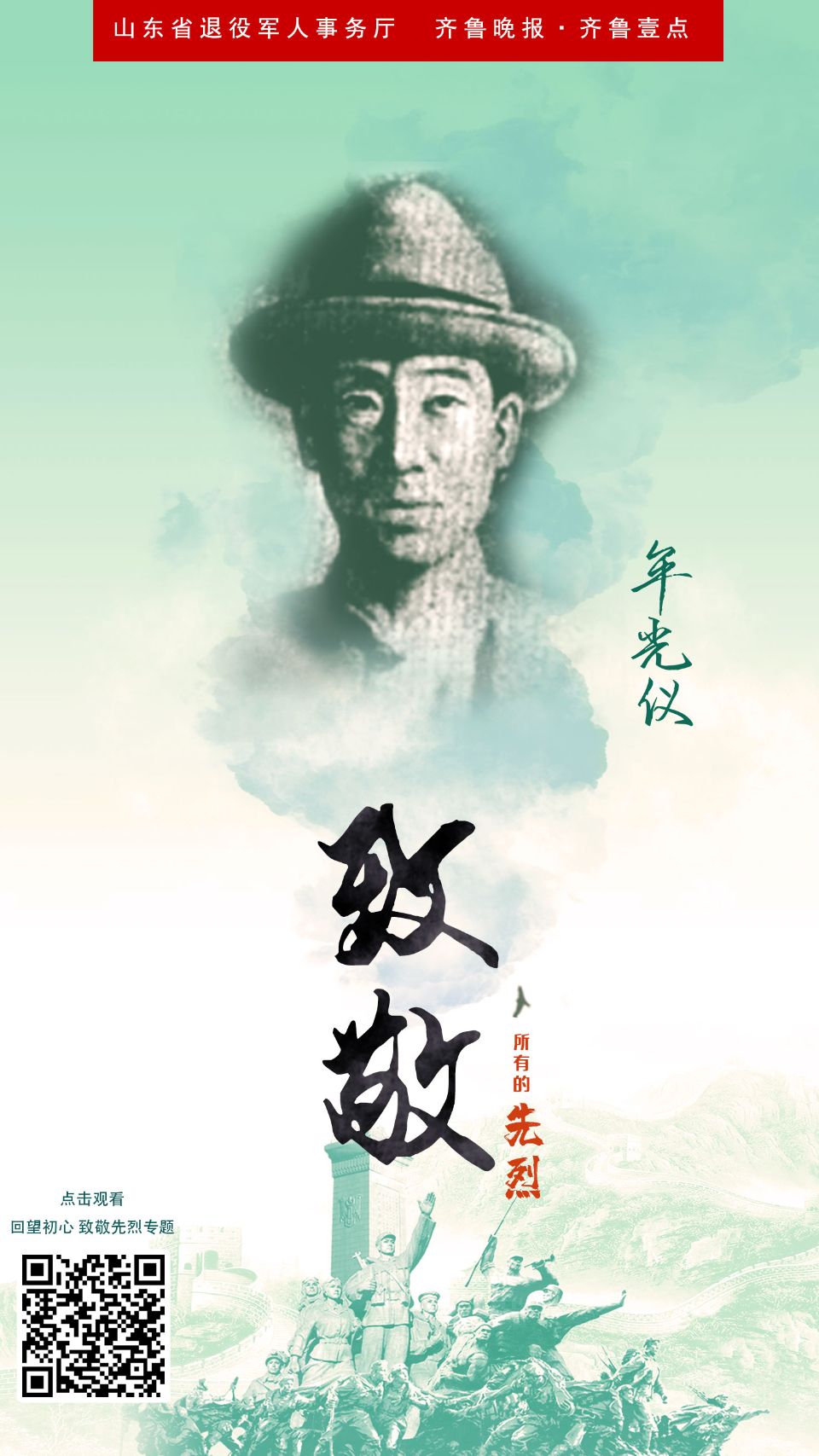 红动齐鲁 | 回望初心海报㉗牟光仪烈士:赤胆忠心为革命 云端党课 2021-06-29 2513 在全党开展党史学习教育中,为了铭记党史,缅怀先烈,山东省退役军人事务厅、齐鲁晚报·齐鲁壹点联合主办,共同推出“回望初心·致敬先烈”专题策划,重温中国共产党为中国人民谋幸福、为中华民族谋复兴的不变初心。今天推出牟光仪的故事。 责任编辑:李和晴