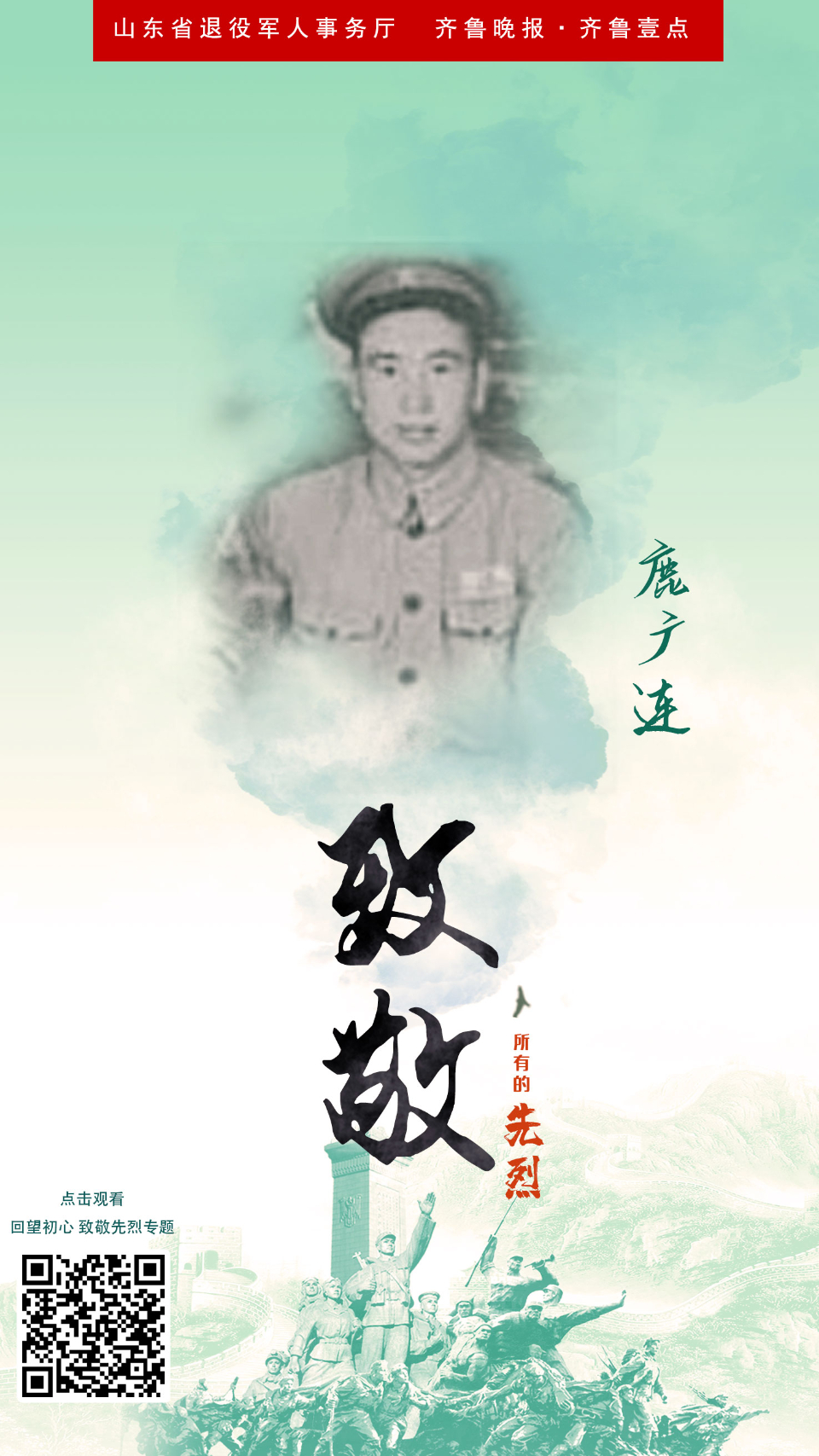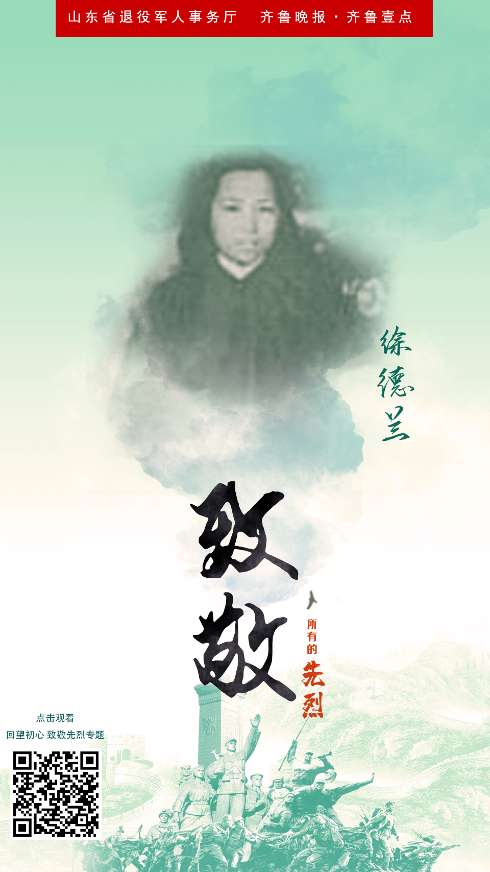 回望初心海报㉙鹿广连、徐德兰烈士:共为抗日死 英名留千秋 云端党课 2021-07-06 3256 在全党开展党史学习教育中,为了铭记党史,缅怀先烈,山东省退役军人事务厅、齐鲁晚报·齐鲁壹点联合主办,共同推出“回望初心·致敬先烈”专题策划,重温中国共产党为中国人民谋幸福、为中华民族谋复兴的不变初心。今天推出鹿广连、徐德兰的故事。 责任编辑:李和晴