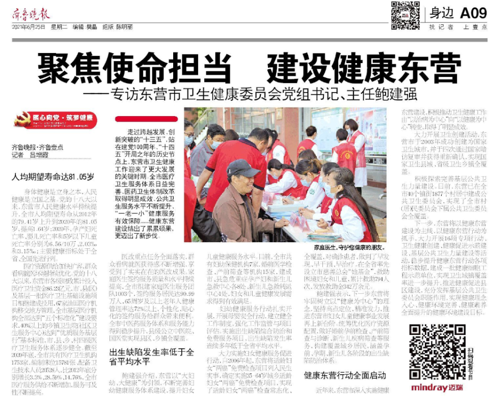 2021年是建党100周年,是“十四五”开局之年,也是山东的“乘势而上求突破,发奋图强开新局”之年。为更好地发挥山东省卫生健康系统党组织战斗堡垒作用和党员先锋模范作用,助力健康山东建设开启新征程,服务山东省卫生健康事业新发展,齐鲁晚报·齐鲁壹点特开设《医心向党·筑梦健康》大型融媒栏目。本期专访嘉宾:东营市卫生健康委员会党组书记、主任鲍建强。