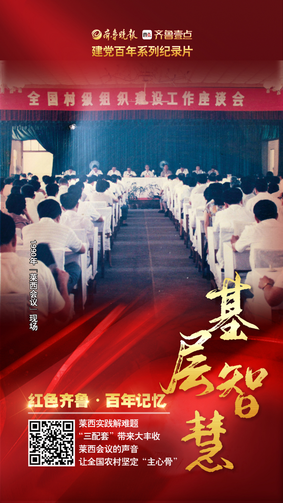 《基层智慧》海报|坚定了全国农村的“主心骨” 大众报业·齐鲁壹点 2021-06-30 齐鲁晚报·齐鲁壹点设计 徐进 百年历史,在奋进征程中波澜壮阔;百年初心,于时代激流中历久弥坚。 为庆祝建党百年,齐鲁晚报·齐鲁壹点推出“红色齐鲁·百年记忆”20集微纪录片,深入挖掘山东红色资源,探寻真理的伟力,从党史中汲取奋勇前行的磅礴力量。 第十二集:基层智慧 责任编辑:许建立