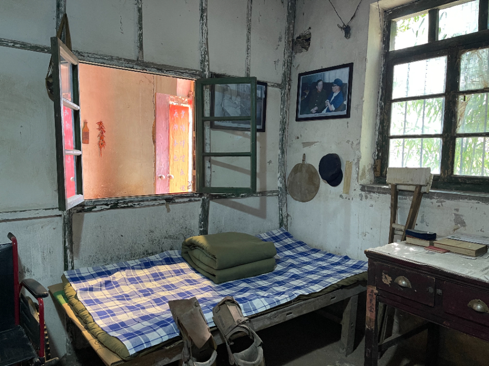 1955年,朱彦夫回到老家的两间破草房,就跟外甥赵圣贵睡在一起。如今,在这间小房里,还保留着朱彦夫当年的陈设布置,靠窗的地方摆放着一张小小的旧板床,床头靠墙处立着一副拐杖,床尾放着朱彦夫曾经穿过的假肢,假肢上的皮带扣子已经生锈,解放鞋也磨得有些光滑,当年朱彦夫就是穿着这样一副沉重的假肢,走遍了村庄的每个角落。