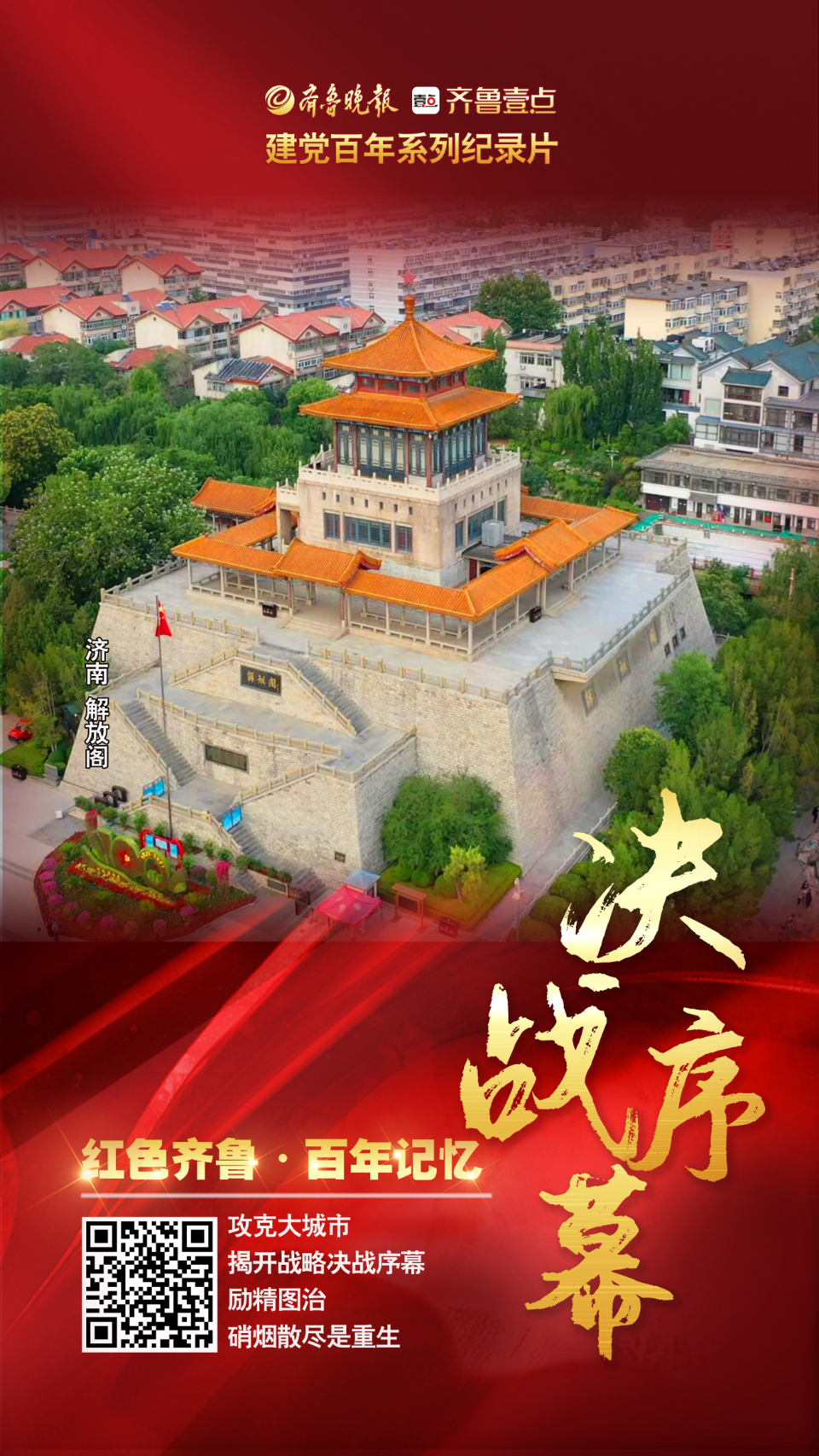 《决战序幕》海报|励精图治,硝烟散尽是重生 大众报业·齐鲁壹点 2021-06-30 齐鲁晚报·齐鲁壹点设计 徐进 百年历史,在奋进征程中波澜壮阔;百年初心,于时代激流中历久弥坚。 为庆祝建党百年,齐鲁晚报·齐鲁壹点推出“红色齐鲁·百年记忆”20集微纪录片,深入挖掘山东红色资源,探寻真理的伟力,从党史中汲取奋勇前行的磅礴力量。 第十九集:决战序幕 责任编辑:许建立