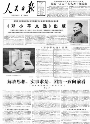 12月 13日,邓小平在中央工作会议闭幕会上作题为《解放思想,实事求是,团结一致向前看》的重要讲话。这篇讲话实际上成为十一届三中全会的主题报告。