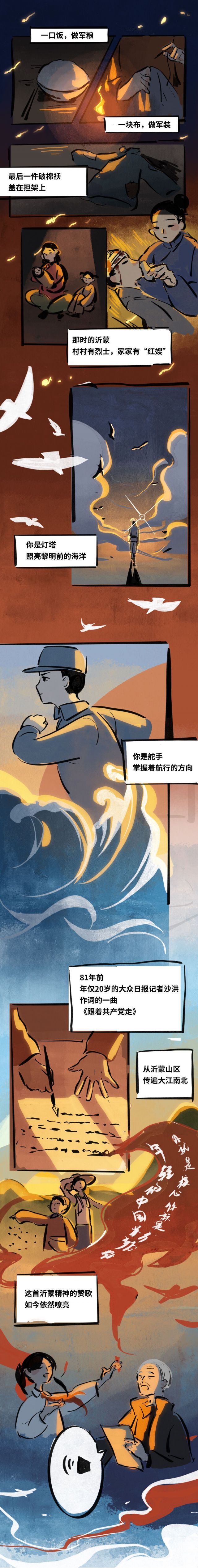 峥嵘壮志,岁月如歌。81年前,在山东抗日根据地最为艰苦的岁月,年仅20岁的大众日报记者沙洪作词的一曲《跟着共产党走》,传唱于沂蒙抗日根据地,于1949年10月1日奏响于天安门开国大典,并一直传唱至今,成为80多年来一直声震960万平方公里神州大地的激昂旋律,响遏行云。