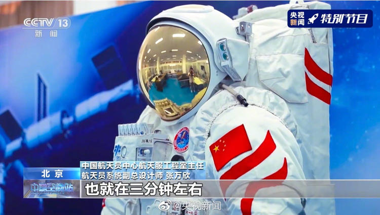 总台央视记者了解到,此次出舱任务,航天员从里到外穿的是专用航天服:先是出舱内衣,然后要套一层液冷服,再套上舱外的航天服。穿上航天服之后,还要进行大流量的冲洗及吸氧、排氮等过程。