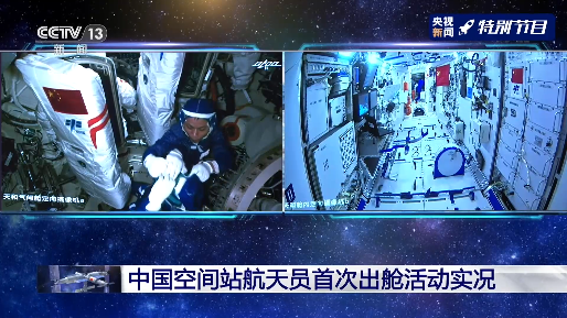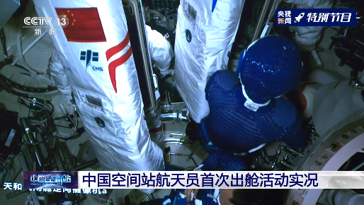 中国自主研制!航天员身着新一代飞天舱外航天服出舱