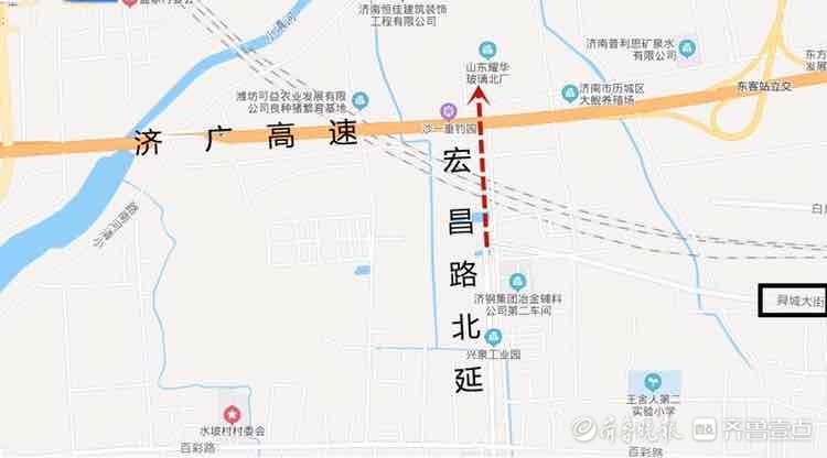 宏昌路北延后,从工业北快速路可以往北直接通到济广高速,这条路也将正式告别断头状态,为济南东站片区新添一条南北主干道。