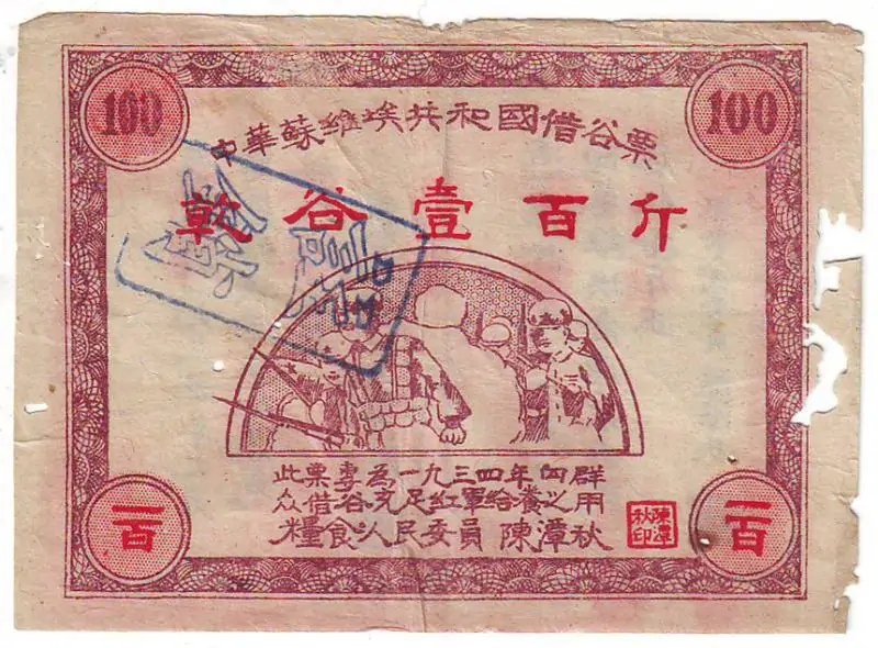 参加中共一大之后,陈潭秋先后任中共安源地委委员、武汉地执委委员长、湖北区委组织部长、江西省委书记、满洲省委书记、江苏省委秘书长、福建省委书记、中央苏区第一任粮食部部长等职。陈潭秋有一个座右铭:“对敌人要仇恨,对群众要爱护。”在担任粮食部长期间,他在筹粮工作中时刻想着群众。在福建长汀镇筹粮工作中,他说:“筹粮一定要注意从实际出发,要注意筹粮不能影响群众的生活,不能让群众挨饿。”最终经过讨论,大家一致同意,向群众征购三分之一,借三分之一,退回三分之一。大家看,现在展示的正是当时的一张“借谷票”,最下边还写有陈潭秋的字样。