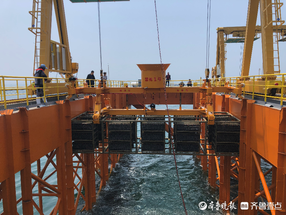凭借南隍城岛得天独厚的自然资源优势,山东南隍城海洋开发有限公司建设了全国首个以鲍鱼为主题的深远海坐底式海珍品智能网箱“国鲍1号”。网箱长36米,宽36米,采用立体化养殖,可悬挂3万多个鲍鱼养殖箱笼,年产可达120吨。