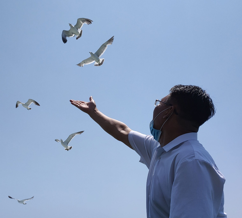 跟着2021齐鲁壹点年中粉丝节第一次踏上南隍城岛,海天一色间,成群结队的海鸥与游客亲密互动,和水母第一次亲密“接触”以及感受海岛夜晚的静谧与美好,都给他留下了难忘的回忆。