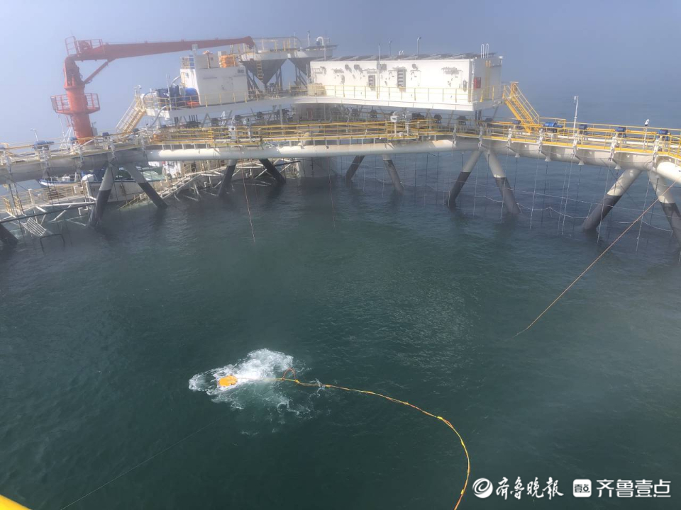 “经海001号为钢结构坐底式网箱平台,亚洲单体最大深海智能网箱。”烟台经海渔业李鑫介绍,养殖包围水体约7万立方米,单体网箱年产渔获600-700吨。