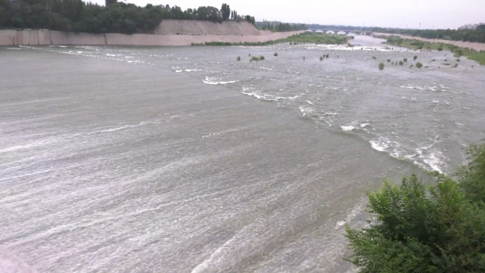 为应对台风“烟花”的影响,从7月27日开始,潍坊峡山水库开始开闸泄水、腾库迎洪。15孔闸门全部开启,库水倾斜而出,最大流量为400立方米/秒,是今年最大规模的开闸泄洪。