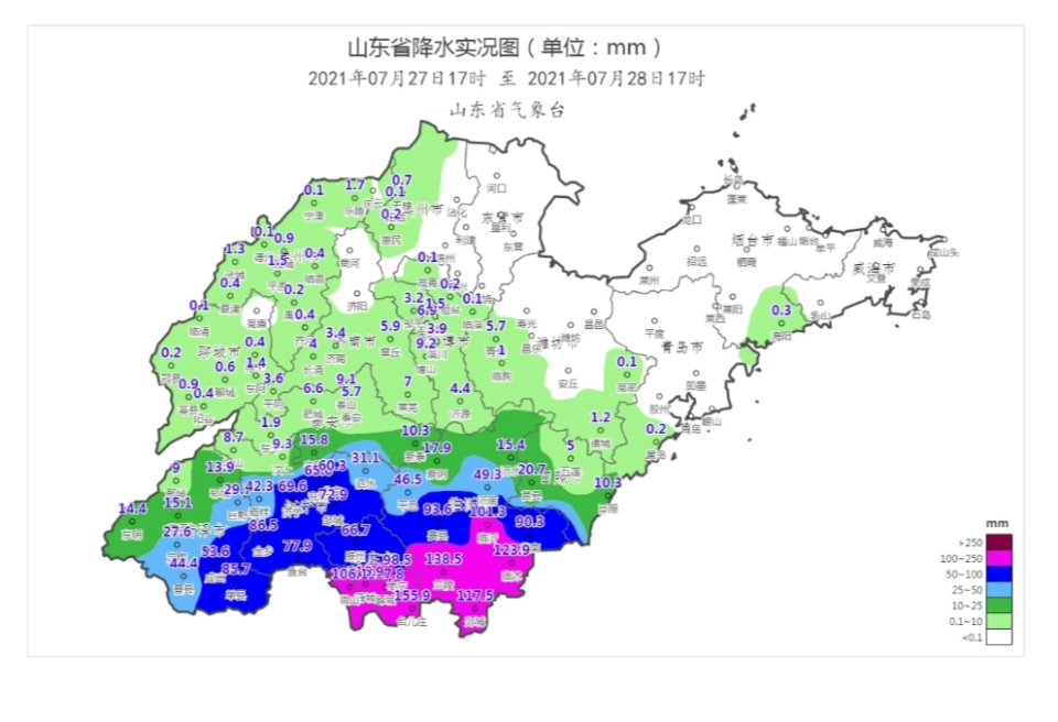 受台风“烟花”影响,自昨天白天开始全省大部地区出现降水天气。截至今天17时,山东省南部济宁、枣庄和临沂等地降水量超过100毫米。