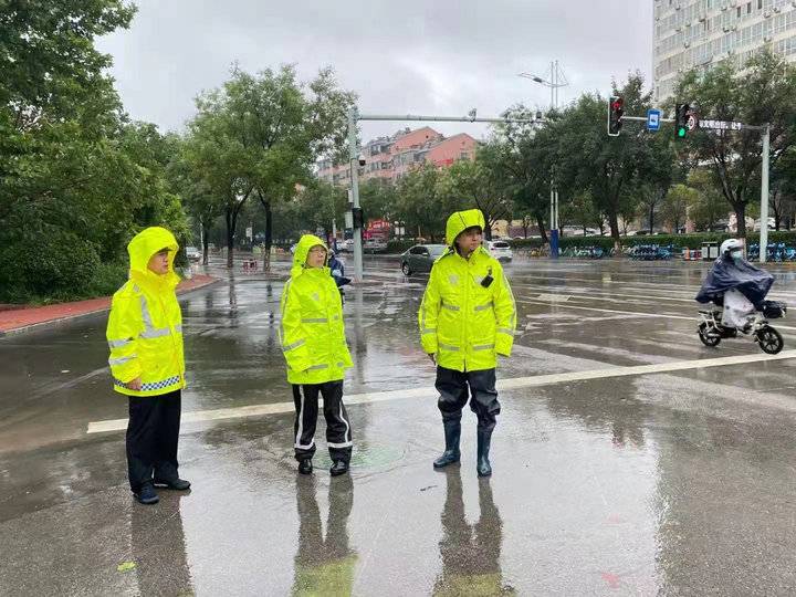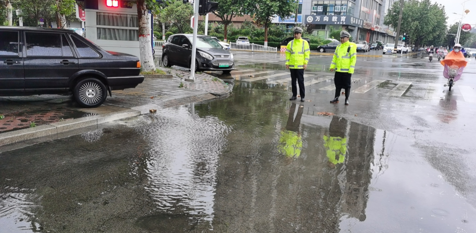 29日一早,临清交警坚守路面,迎战强降水天气
