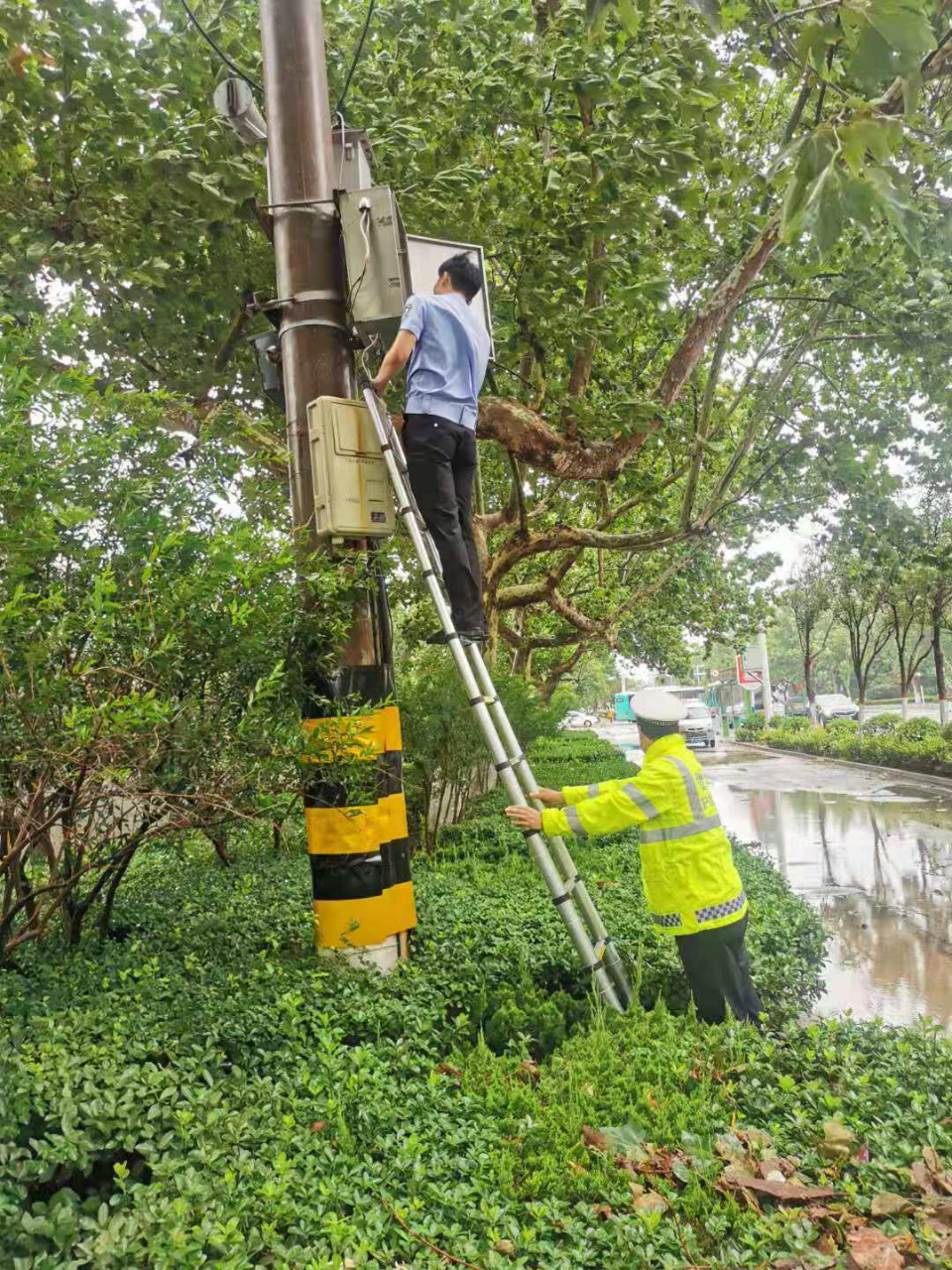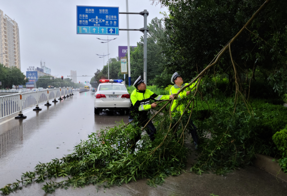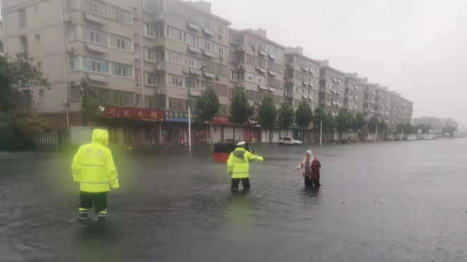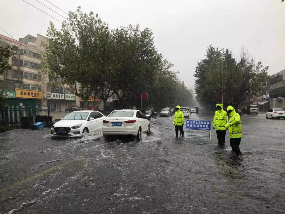 东阿交警坚守路面,迎战台风带来的强降水天气