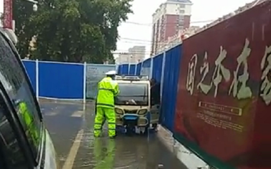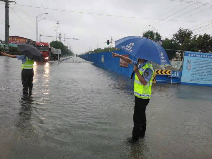 临清交警在一线配合辖区防汛工作