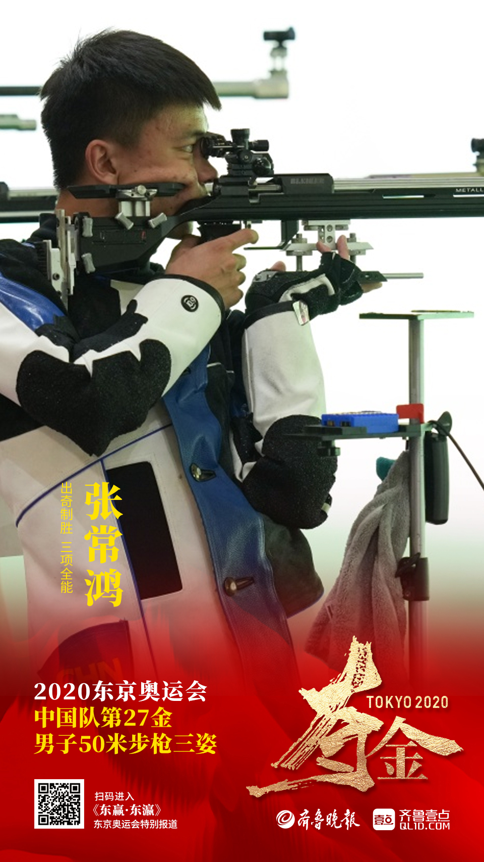 2000年出生在烟台市龙口市诸由观镇涧村的张常鸿,在今天刚刚结束的东京奥运会男子50米步枪三姿的比赛中,获得金牌,这是烟台籍选手在本届奥运会中获得的第二枚金牌。