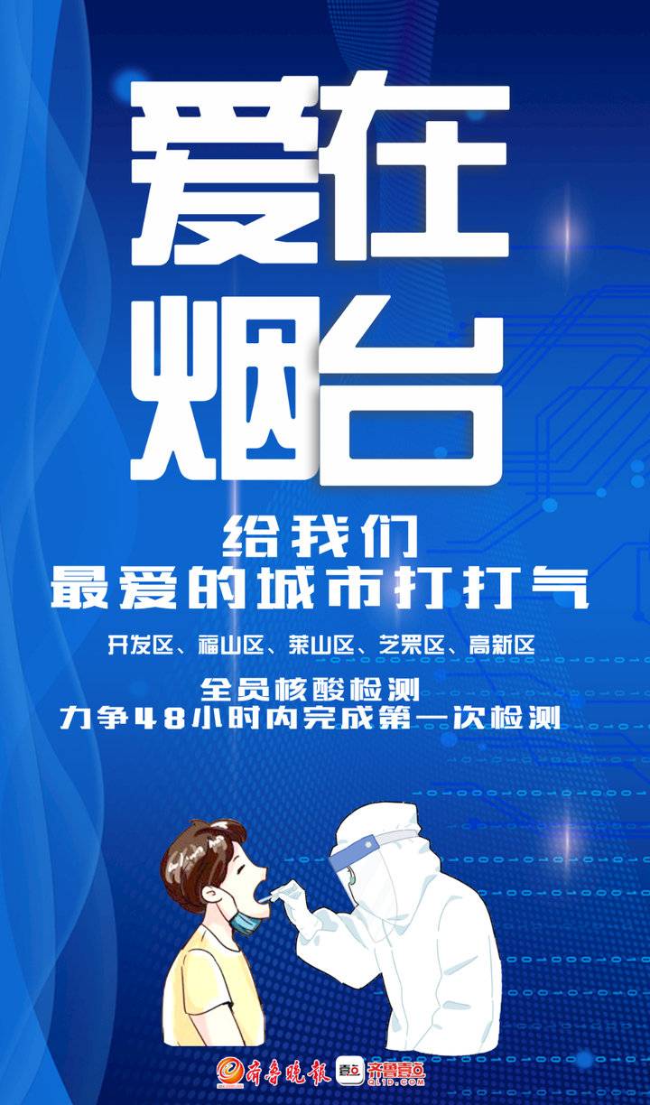 8月3日,烟台市启动开发区、福山区、莱山区、芝罘区、高新区全员核酸检测,力争48小时内完成第一次检测。请广大市民理解支持并配合流调和核酸采样,自觉落实相应疫情管控措施。全员核酸检测是应对疫情的一个必要措施,广大市民不必恐慌,根据有关部门安排,积极按要求配合检测。