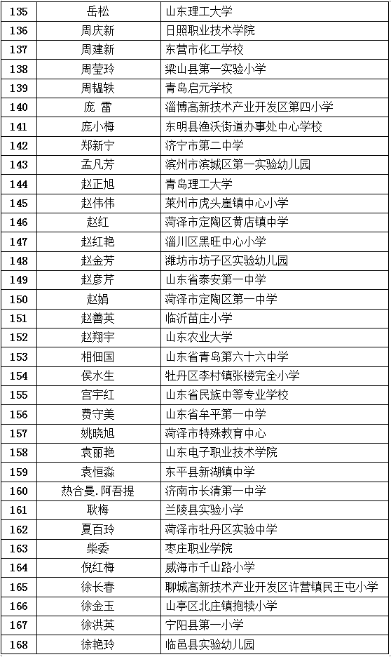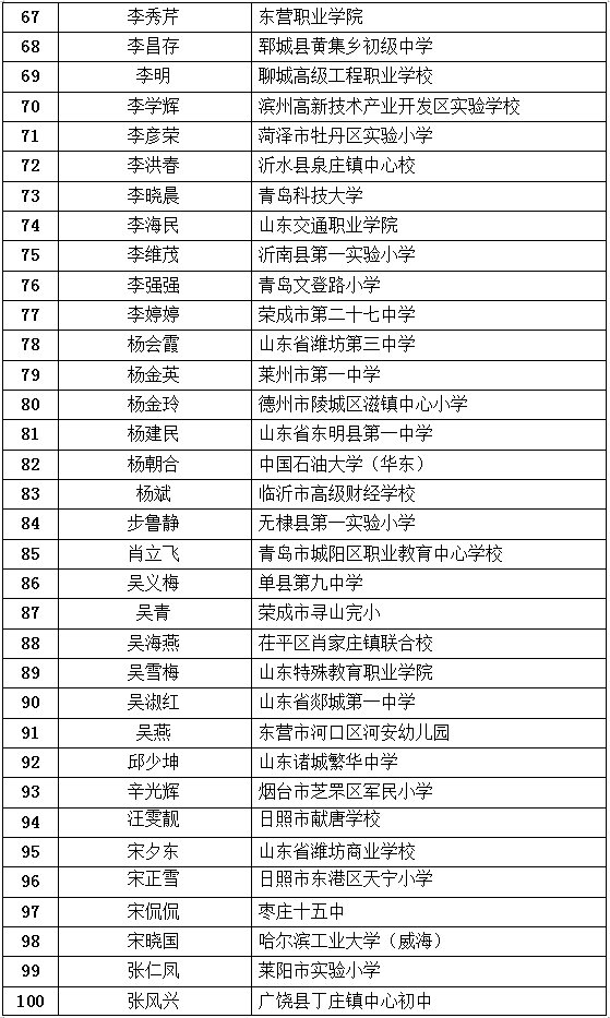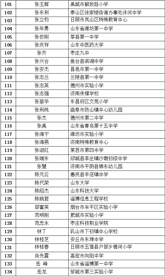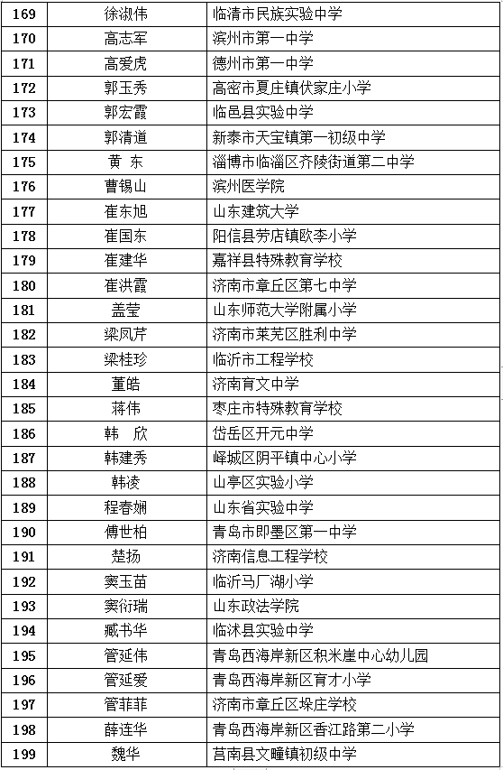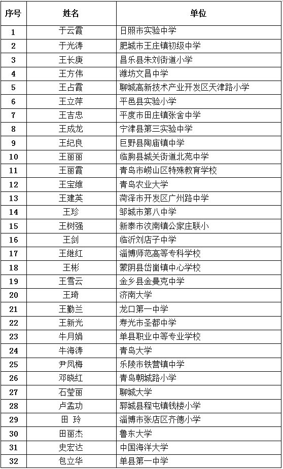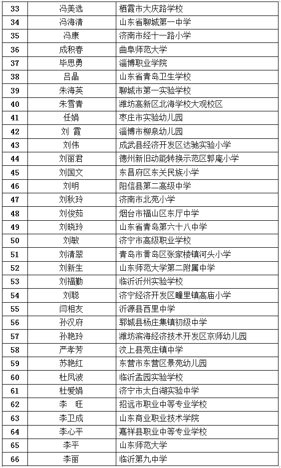 “2021齐鲁最美教师”省级评选候选人名单(以姓氏笔画为序)