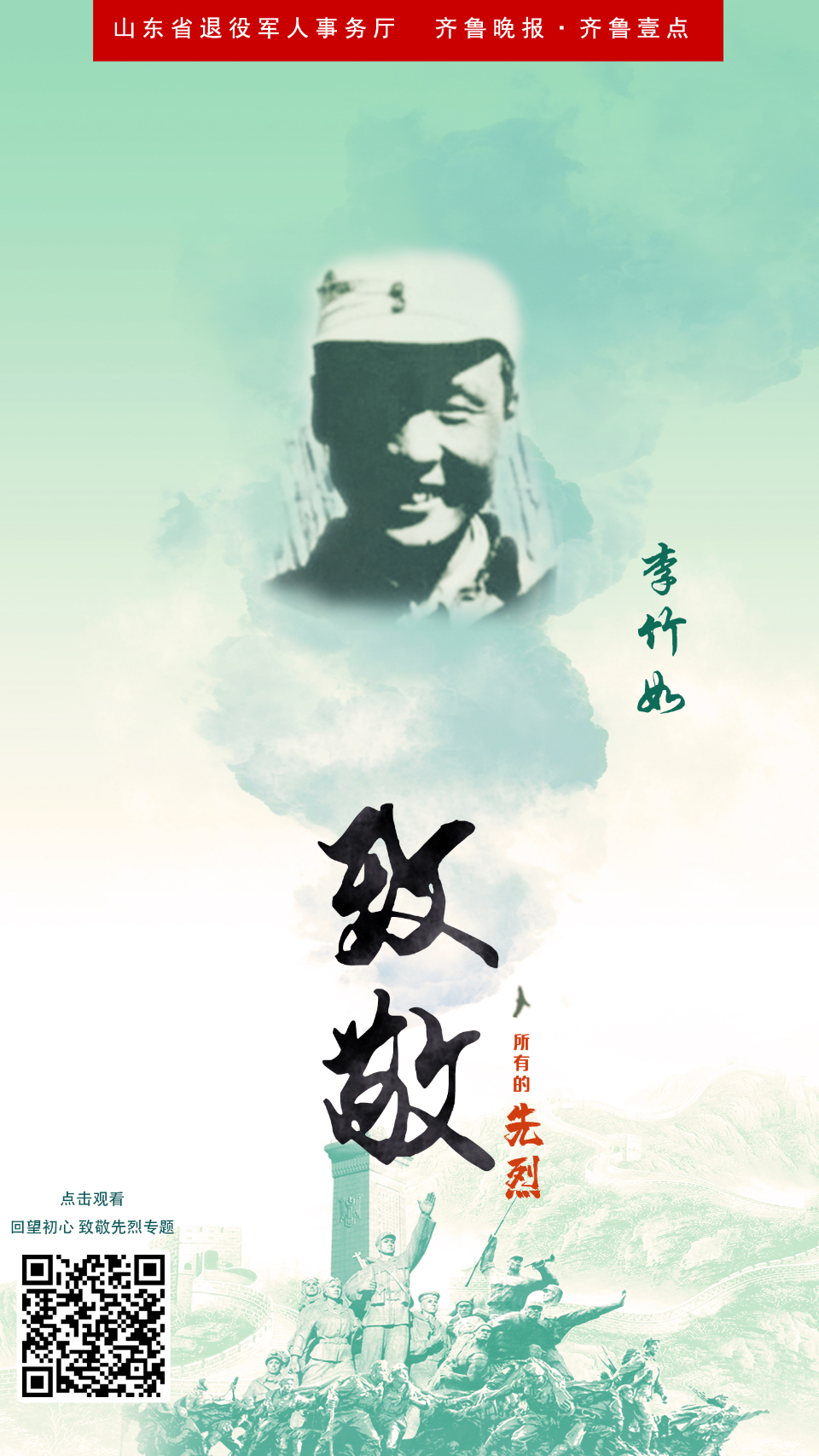 回望初心·致敬先烈海报㉝丨李竹如:呐喊与战斗的一生 云端党课 2021-09-27 2562 在全党开展党史学习教育中,为了铭记党史,缅怀先烈,山东省退役军人事务厅、齐鲁晚报·齐鲁壹点联合主办,共同推出“回望初心·致敬先烈”专题策划,重温中国共产党为中国人民谋幸福、为中华民族谋复兴的不变初心。今天推出李竹如的故事。 责任编辑:李和晴