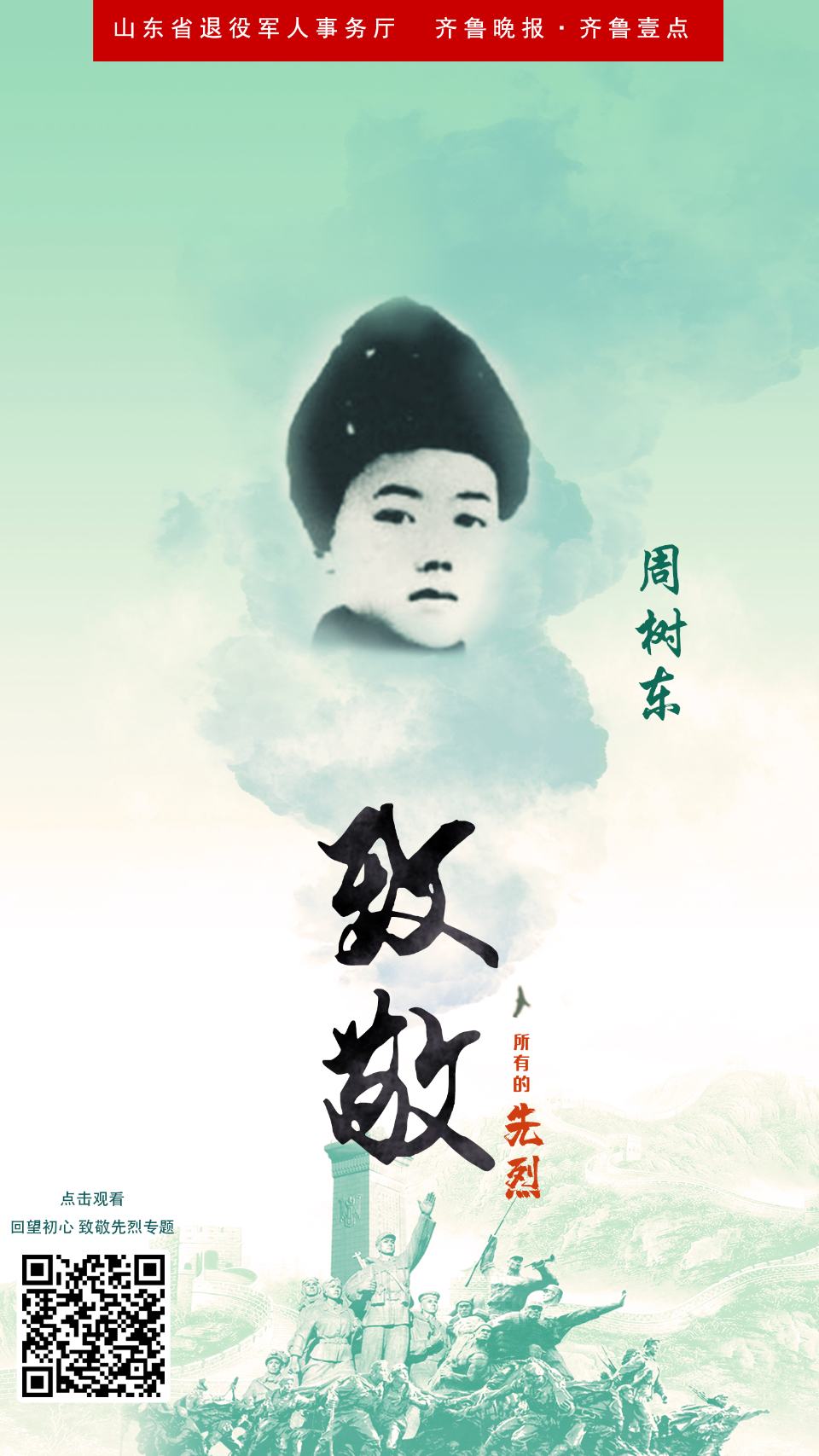 回望初心·致敬先烈海报㊷丨周树东:收拾山河祭英魂 云端党课 2021-10-08 2327 在全党开展党史学习教育中,为了铭记党史,缅怀先烈,山东省退役军人事务厅、齐鲁晚报·齐鲁壹点联合主办,共同推出“回望初心·致敬先烈”专题策划,重温中国共产党为中国人民谋幸福、为中华民族谋复兴的不变初心。今天推出周树东的故事。 责任编辑:李和晴