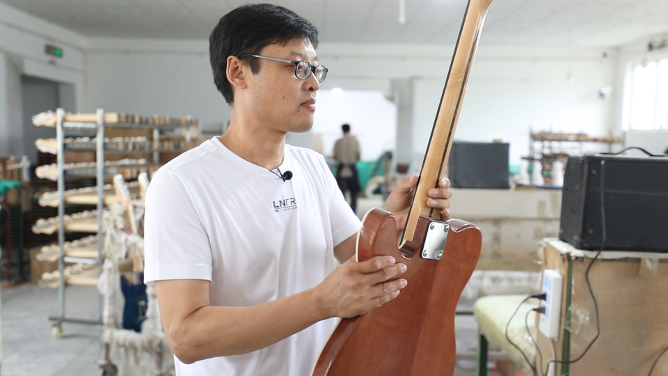 贾佐凯从车间里出来,T恤上沾满灰尘,完全不像“老板”的样子。“对乐手来说,理想中的‘吉他小镇’,应该到处有演出,歌舞升平。但作为‘吉他小镇’的商人,我希望配套设施更完善。”贾佐凯说,电吉他的琴钮、拾音器等五金件大部分都要从外地购买,给当地电吉他生产增加了成本。小镇也瞅准了商机,很多作坊工厂也正在转型,填补这块“短板”。