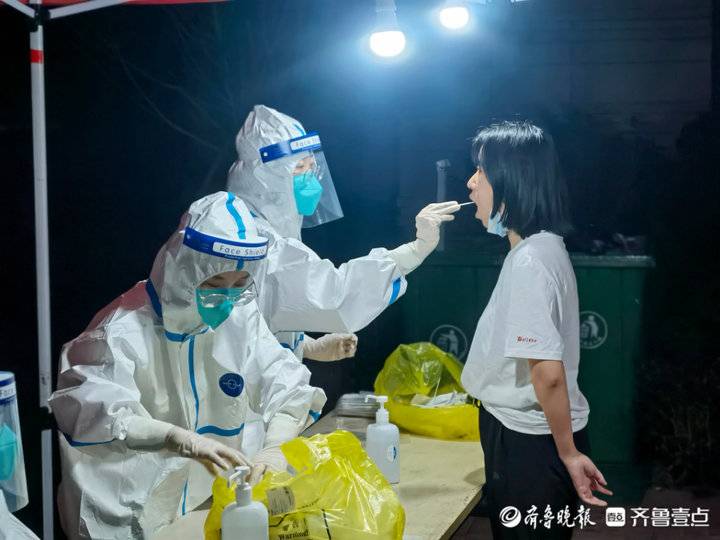 8月2日晚上,烟台开发区越秀星汇金沙小区进行核酸检测。壹粉 姚南通 摄
