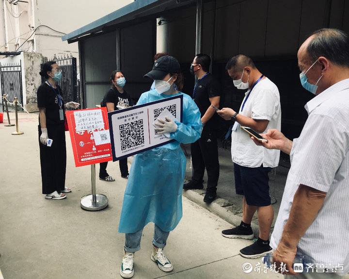 8月7日,烟台山社区采样点,市民正在微信扫码登记信息。壹粉 暗香疏影 摄