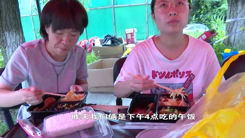 上午11点,孙建杰的爱心午餐送到了莱山区绿色家园核酸检测点。正好有两位轮班的医护人员正在休息。