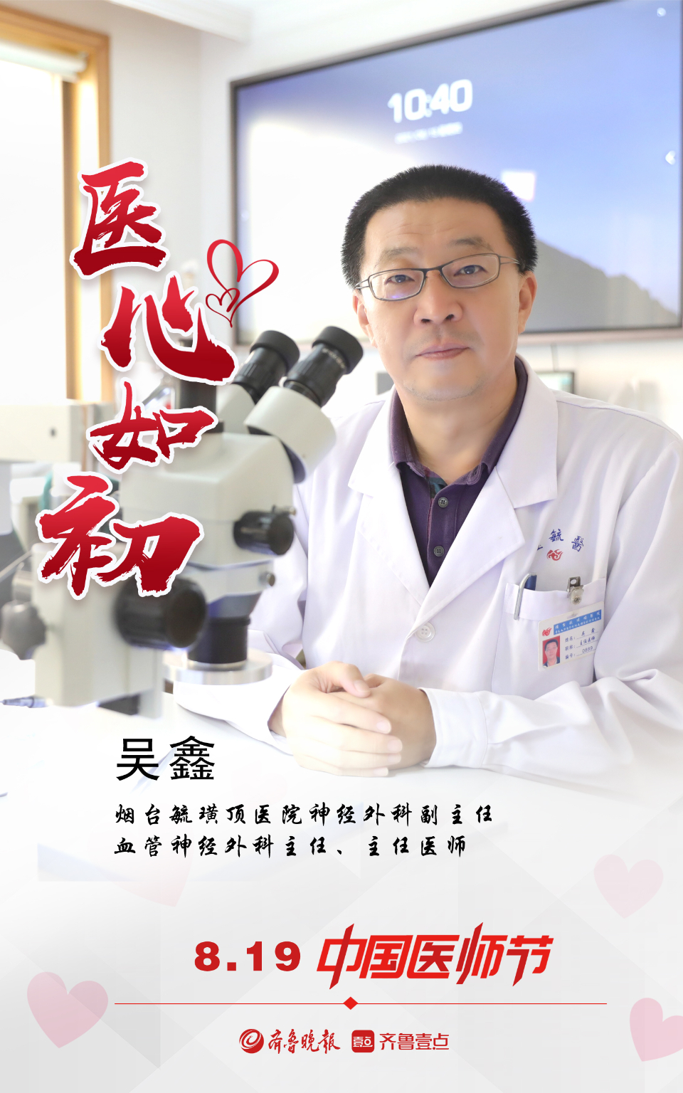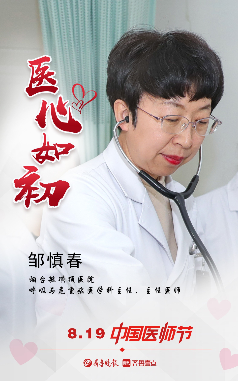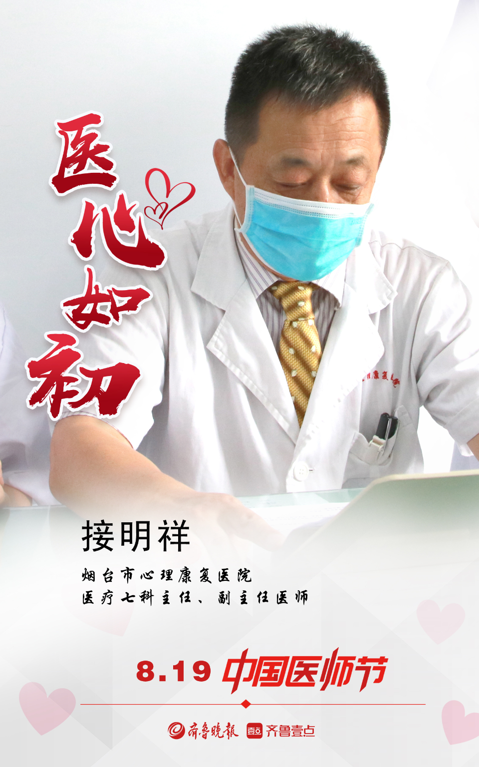 医心如初!壹点海报向医师致敬 大众报业·齐鲁壹点 2021-08-19 2005 齐鲁晚报·齐鲁壹点 记者 孙淑玉 制图 邵舒琨 百年华诞同筑梦,医者担当践初心。疫情防控中,他们是冲在一线的最美逆行者;手术室内,他们是临危不乱的“操刀”人;病房里,他们是细致耐心的守护者。习惯了他们淡定勇敢又从容的模样,我们往往会忽略这些白衣天使们背后的付出和自我磨炼。2021年8月19日是第四个中国医师节,值此之际,齐鲁晚报·齐鲁壹点推出系列海报,向广大医师们致敬。 责任编辑:任鹏鸿