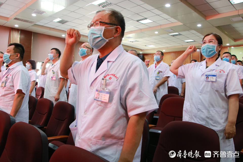在庄严的宣誓仪式上,全体医师在领誓人的带领下握拳宣誓,表达了当代精神科医师“百年华诞同筑梦,医者担当践初心”的豪情壮志,展现了新时期卫生健康工作者“敬佑生命、救死扶伤、甘于奉献、大爱无疆”的职业精神。