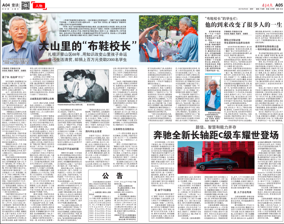 “为了沂蒙山的孩子们,李老师付出了自己一生。”张文强感慨道,为了让孩子们走出大山,李老师一直在坚守。“他从没中断过自己的付出,一直在做,一直在做。”