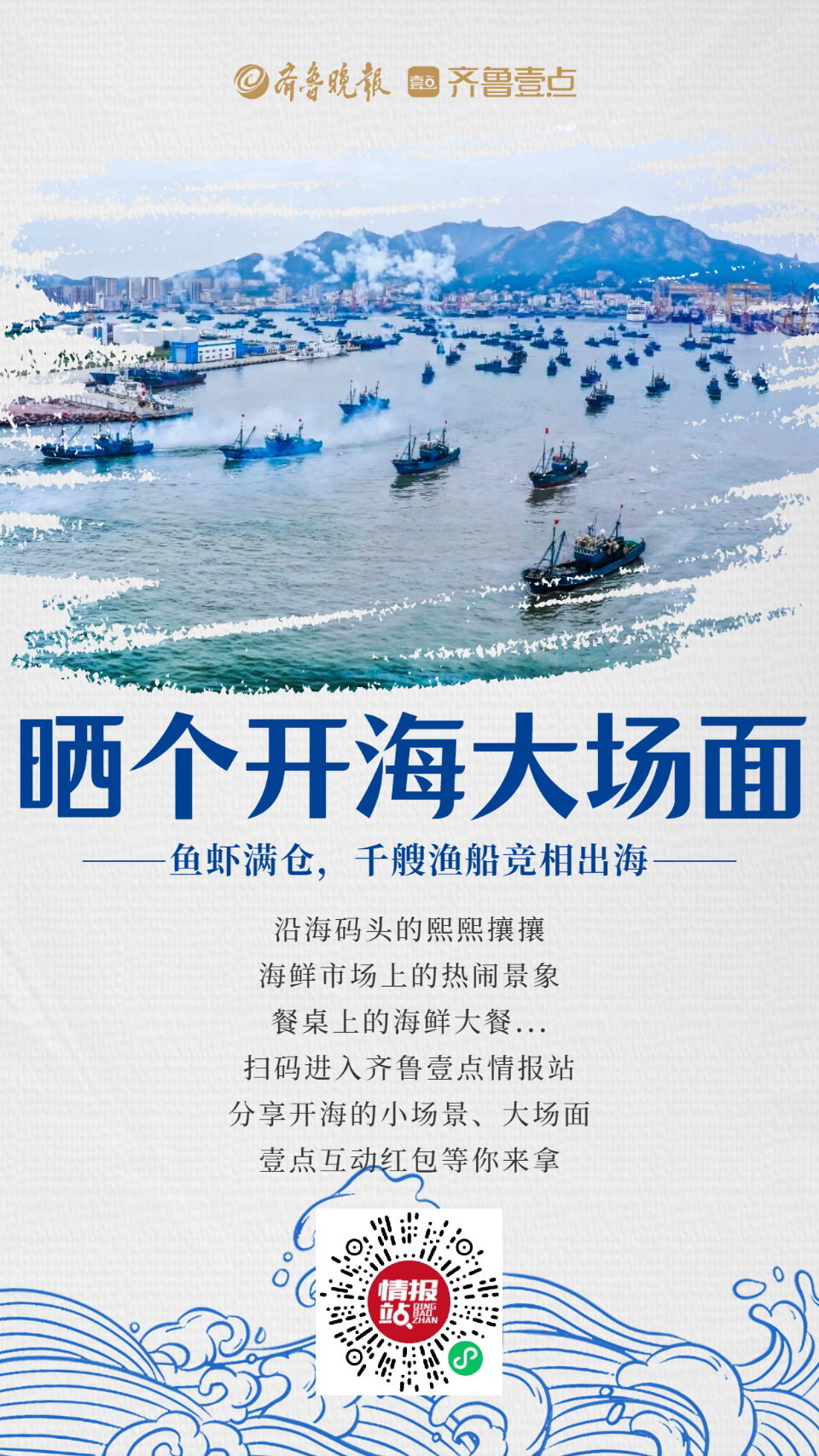 扫描上方二维码,进入齐鲁壹点情报站,参与情报站话题互动分享开海的小场景、大场面,更有壹点互动红包等你拿!