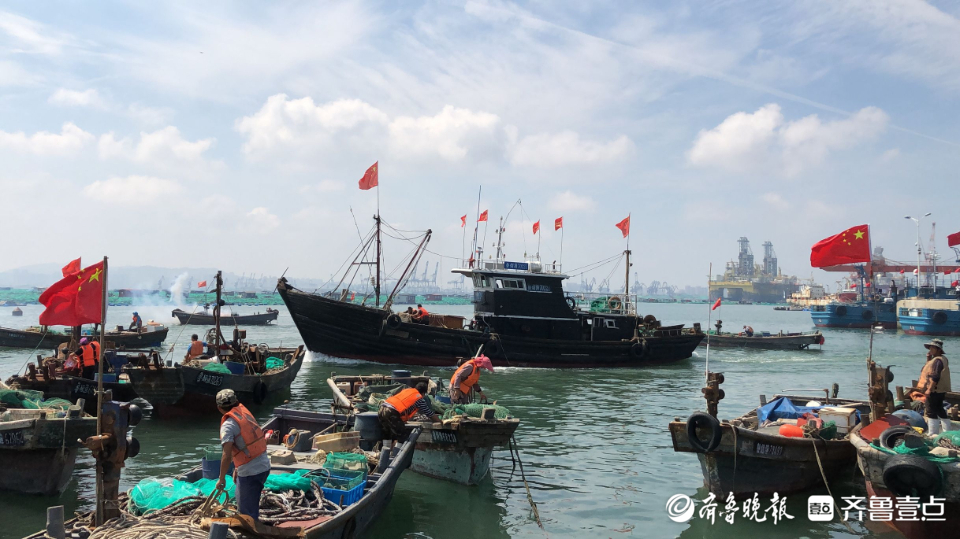 9月1日12点,正式开海的时间到来。烟台东口码头鞭炮齐鸣,用传统的方式祈求鱼虾满舱。渔民们洋溢着笑容向记者挥手告别,整齐的渔船开足马力,纷纷驶向远海。