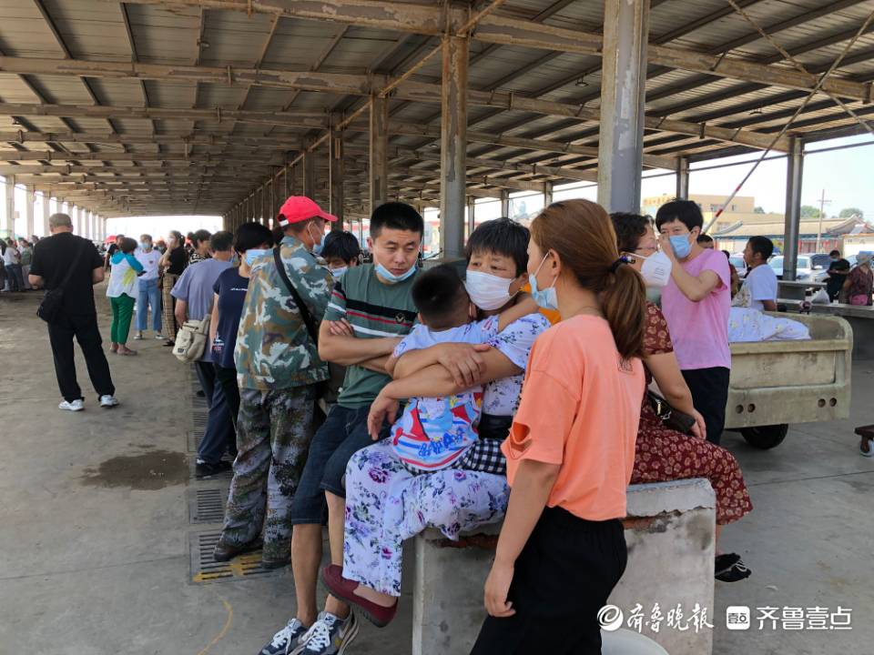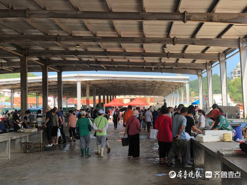 9月1日下午一点半,烟台东口码头已经热闹起来,市民手提小桶、推着小车,陆陆续续朝码头市场赶来。目前,码头还未有归来的渔船,市民们都找好阴凉处,翘首向海,盼船而归。