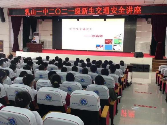 为切实提高广大学生的安全文明出行意识和交通安全自我防范能力,28日,乳山市公安局交警大队民警走进乳山市第一中学,为刚刚升入高中的高一新生们带来一堂交通安全知识讲座。