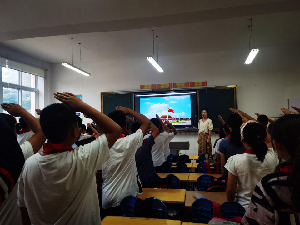 南山小学学生用饱满的热情体现“强国有我,请党放心”。