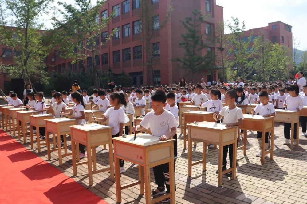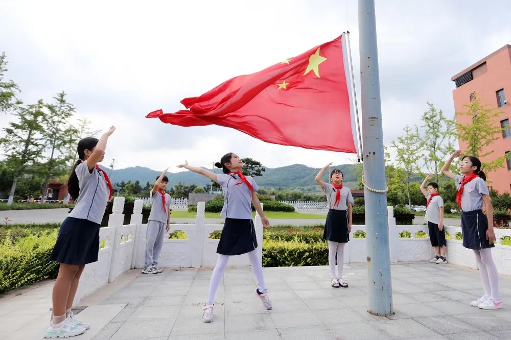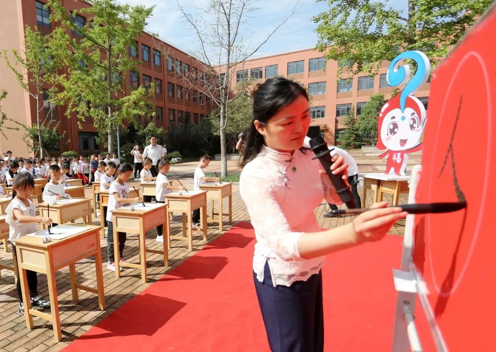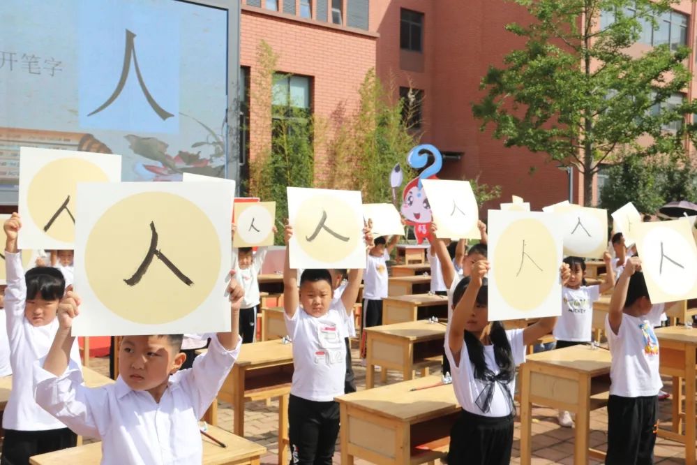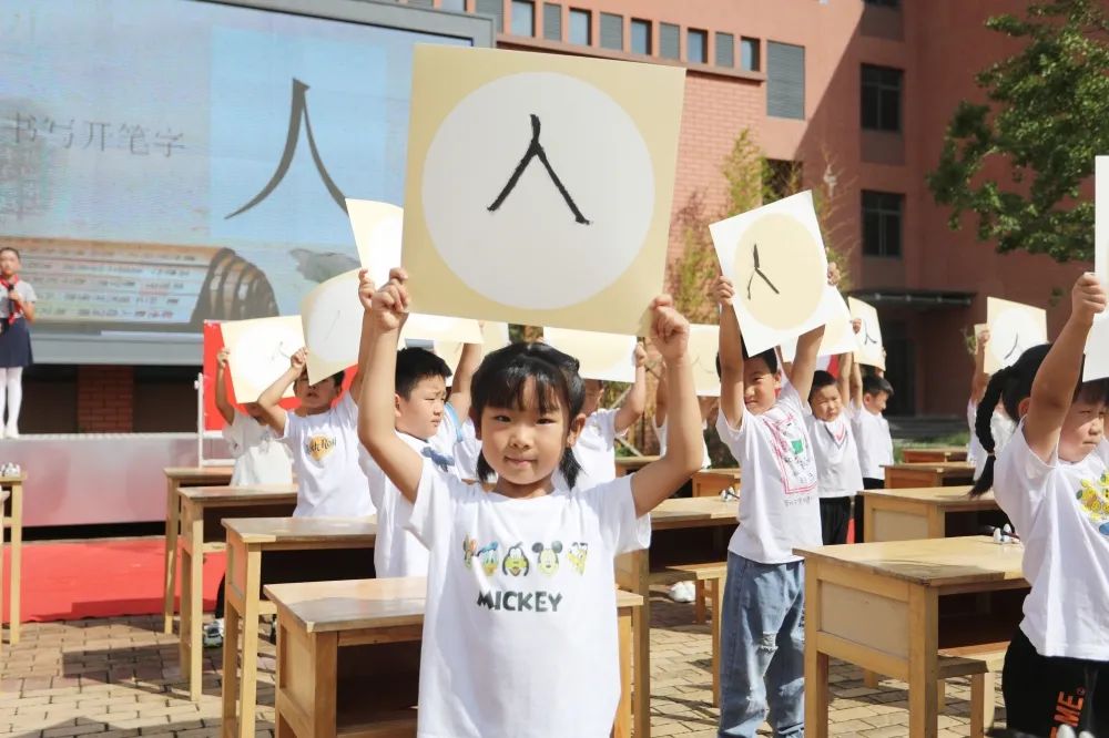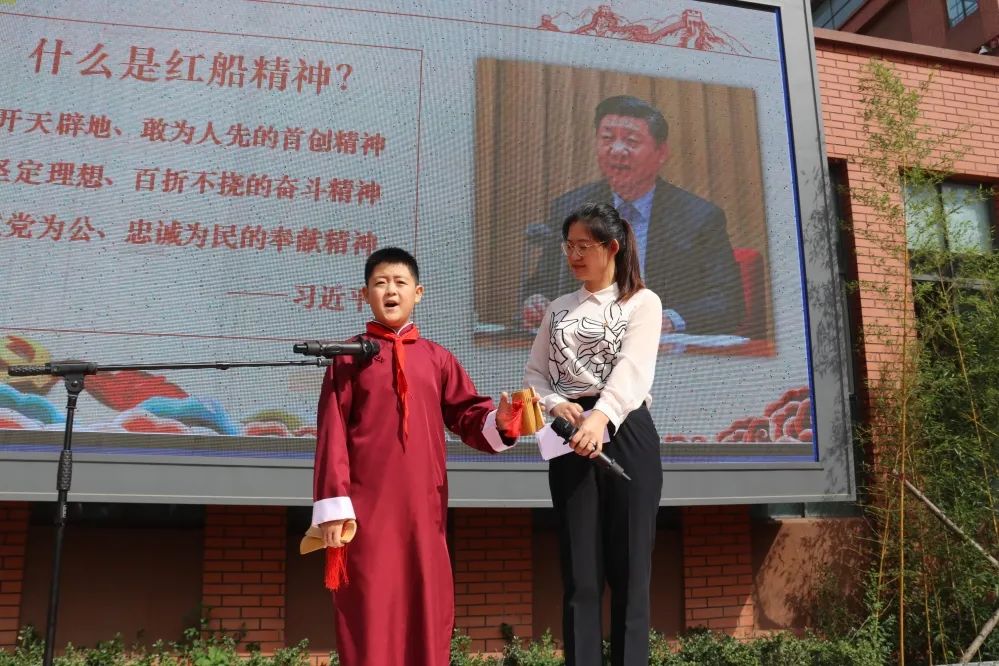 “开学第一课”暨开学典礼在欢快、自豪的氛围中拉开帷幕。当雄壮的国歌奏响,鲜艳的国旗冉冉升起时,全校师生齐声高唱国歌,向国旗敬礼。丛礼校长致辞,对学生的文明礼仪、学习习惯提出要求,号召全体师生爱党爱国,坚定理想信念,砥砺前行。在党史宣讲环节,学校邀请到了高级政工师、山大研究生合作导师、哈工大继续教育院客座教授王新志,王教授带领大家重温了中国共产党百年发展历程中的重要时刻,师生们的爱党、爱国热情一次次被点燃。学校滕馥聪老师和张家齐同学则是用快板的形式讲述红船精神,大家深刻体会到:没有共产党,就没有新中国。随后,独具传统特色的“开笔礼”隆重举行。在全体师生的关注下,一年级新生经历朱砂启智 、启蒙描红、肃整衣冠等仪式,感受中华民族尊师崇德、立志读书的传统美德,喜迎新学期的到来。
