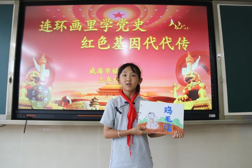 在三年级3班,这里正开展着“连环画里学党史,红色基因代代传”分享活动。连环画里宝藏多,革命知识处处藏,通过阅读连环画激发了孩子们学习党史的兴趣,潜移默化了革命英雄精神。
