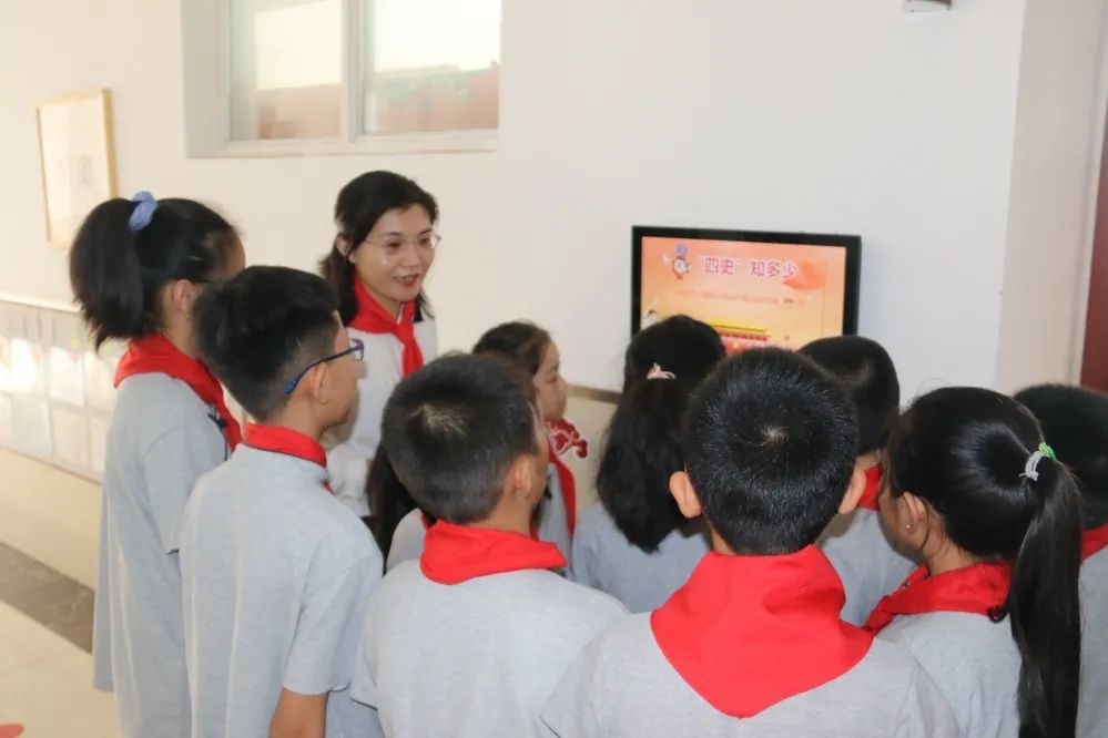 为更好开展“四史”教育进校园,福泰小学开展“从小学党史,永远跟党走”年级序列化党史主题教育。一年级利用升国旗和手里的小国旗开展国旗国旗我爱你系列教育,二年级党的优良传统教育,三年级党的伟大成就激励我,四年级党的成功经验启迪我,五年级党的历史教训警示我。在学校走廊的电子班牌上,随处可见红色故事、红色精神、人物英雄事迹等学习资源,真正把“四史”变成学校重要的教育资源,实现了“四史”教育进校园、进课堂、进头脑。