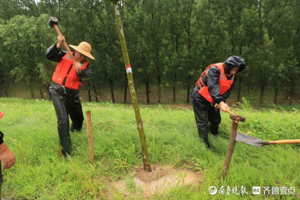 2018年、2019年,东营连续两年受到台风影响,我们抢险队就参与到地方抗击台风的战斗之中。尤其是2018年8月,受台风影响,东营区主城区受灾,我们东营黄河民兵抢险队临危受命,投入机械、人员参与耿井水厂泄水渠道修建、黄河街道办事处南五干排洪水倒灌居民小区围堵等行动。其中,在五干排洪水倒灌居民小区的处置中,我们经过排查并结合现场情况,采用了黄河常用的柳枕封堵管口、外部用土料闭气的方式,忙碌13个小时,终于彻底封堵倒灌口。那天晚上,我又在现场紧盯了一夜,直到观测没有裂缝的出现,才彻底松了口气。