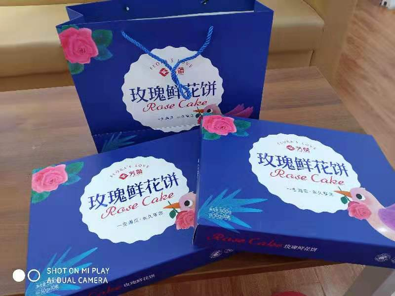 在济南展馆里,还有山东芳蕾玫瑰集团带来的玫瑰鲜花饼。这也是美食界“一绝”。用平阴玫瑰制成的花饼饼皮掉渣、酥软不硬,饼馅新鲜、非常好吃,主播薇娅曾多次为其带货。