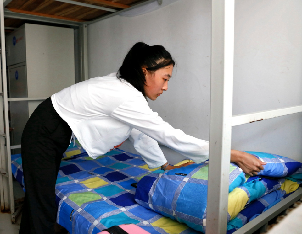 师生志愿者积极投入到迎新工作中,帮助新生拿行李,引领登记、办理餐卡、领取床上用品、前往宿舍安置等,帮助新生适应校园生活。