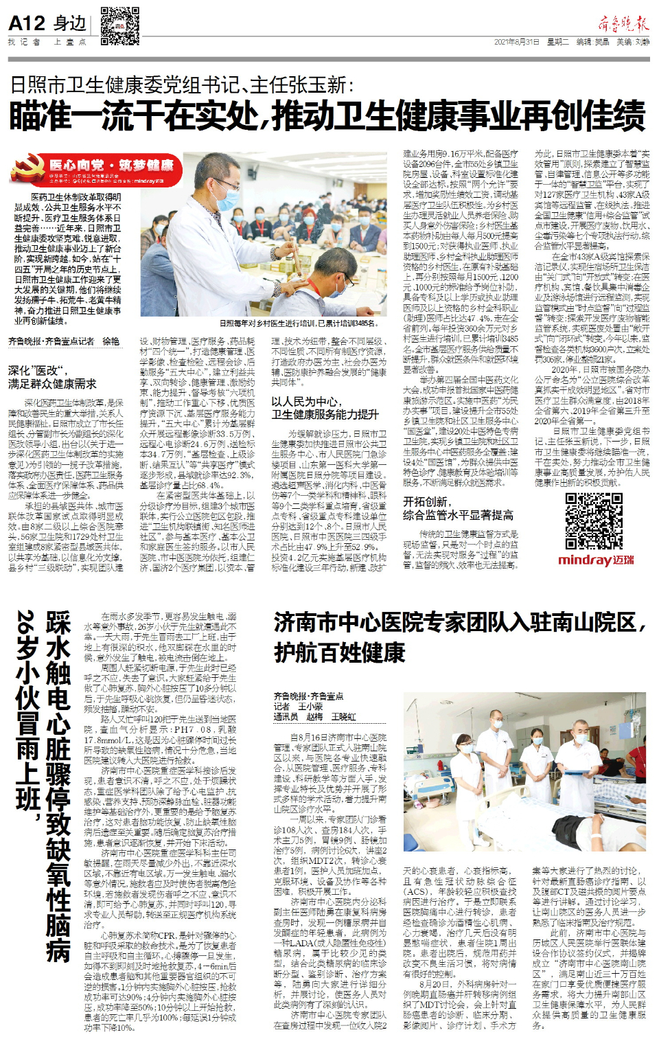 2021年是建党100周年,是“十四五”开局之年,也是山东的“乘势而上求突破,发奋图强开新局”之年。为更好地发挥山东省卫生健康系统党组织战斗堡垒作用和党员先锋模范作用,助力健康山东建设开启新征程,服务山东省卫生健康事业新发展,齐鲁晚报·齐鲁壹点特开设《医心向党·筑梦健康》大型融媒栏目。本期专访嘉宾:日照市卫生健康委党组书记、主任张玉新。